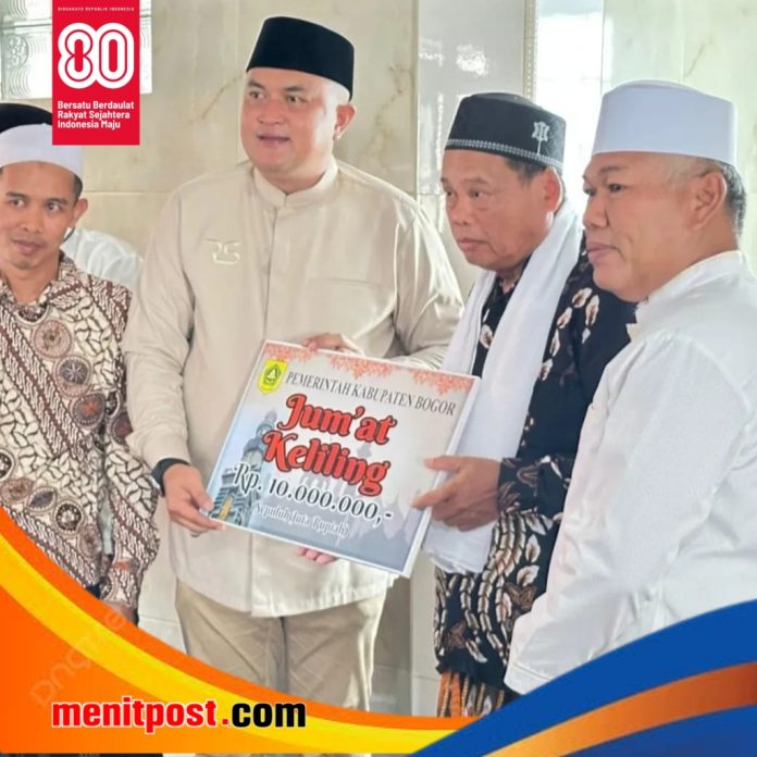 Babakan Madang- Bupati Bogor, Rudy Susmanto, bersama Forum Koordinasi Pimpinan Daerah (Forkopimda) dan jajaran Pemerintah Kabupaten Bogor melaksanakan kegiatan Shalat Jum’at Keliling (Jumling) di Masjid At-Tagwa, Kampung Sukamantri, Desa Karang Tengah, Kecamatan Babakan Madang, Jumat (8/8/2025).