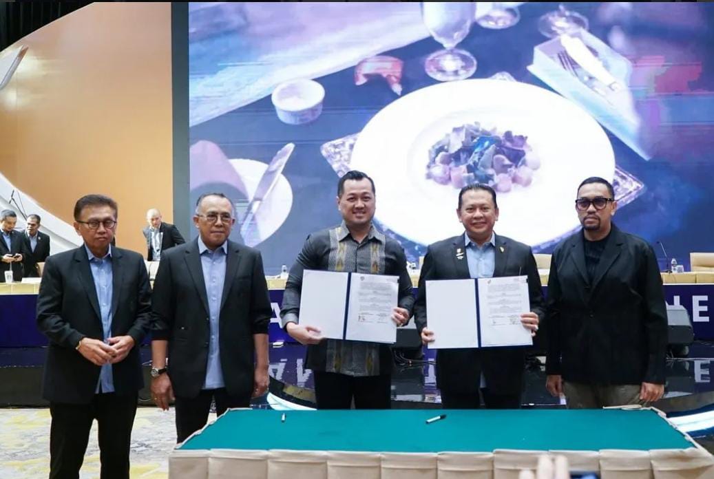 Menitpost.com, JAKARTA – Ketua MPR RI sekaligus Ketua Umum Ikatan Motor Indonesia (IMI) Bambang Soesatyo melantik 23 Ketua IMI Provinsi secara bersamaan, dalam acara Rapat Kerja Nasional IMI Tahun 2022 di Golden Ballroom Hotel Sultan, Jakarta, Sabtu (18/2/23). Pelantikan bersama ini selain lebih efektif dan efisien, juga untuk mempercepat pergerakan roda organisasi IMI di berbagai provinsi agar bisa segera bekerja untuk memajukan olahraga dan mobilitas otomotif di wilayahnya masing-masing. Sekaligus menunjukan bahwa IMI semakin menyempurnakan kepengurusannya di tingkat provinsi.
