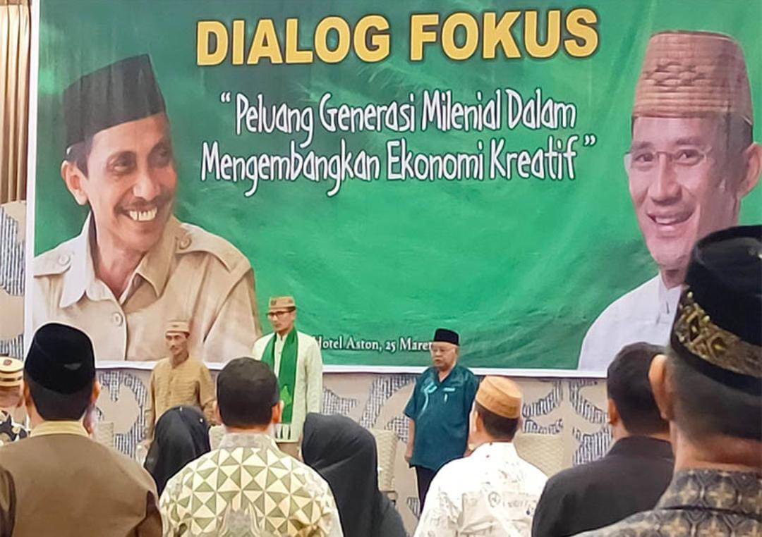 “Di era sekarang kita jadi pemain, penonton atau penentu?” kata Sandiaga Uno pada dialog fokus peluang generasi milenial dalam mengembangkan ekonomi kreatif yang berlangsung di sebuah hotel di Kota Gorontalo, Sabtu malam (25/3/23).