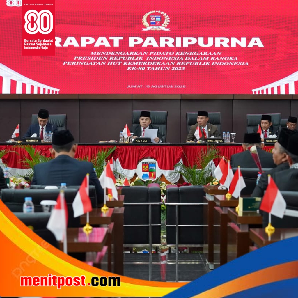 DPRD Kota Bogor melaksanakan Rapat Paripurna dengan agenda mendengarkan Pidato Kenegaraan Presiden Republik Indonesia, Prabowo Subianto, dalam Sidang Tahunan MPR RI memperingati HUT Ke-80 Kemerdekaan RI. Rapat yang digelar di Ruang Paripurna DPRD Kota Bogor, Jumat (15/8/2025), ini juga sekaligus menetapkan Rancangan Peraturan Daerah (Raperda) Kota Bogor tentang Perubahan Atas Peraturan Daerah Nomor 11 Tahun 2023 mengenai Pajak Daerah dan Retribusi Daerah.