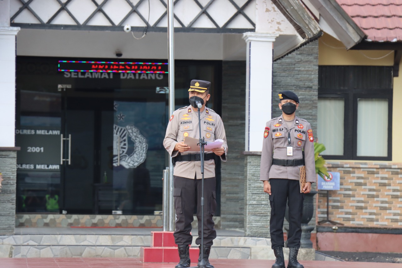 Bertindak sebagai Inspektur Upacara Hari Kesadaran Nasional, Wakapolres Melawi Kompol Asmadi membacakan amanat Kapolres Melawi AKBP Muhammad Syafi’i, S.I.K., S.H., M.H.